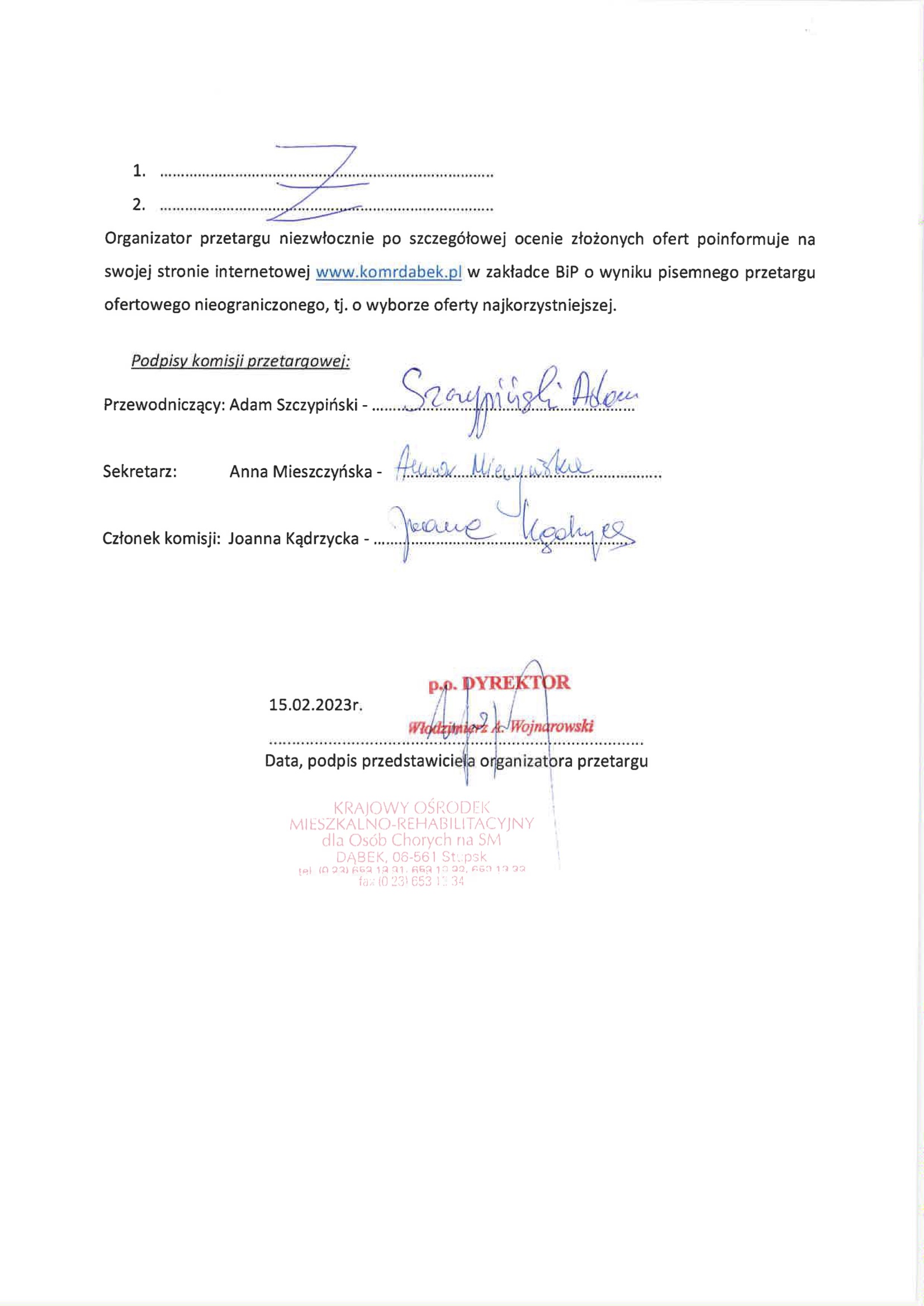 | Podmiot udostępniający informację: | KOMR |